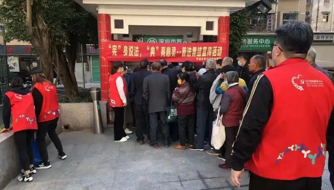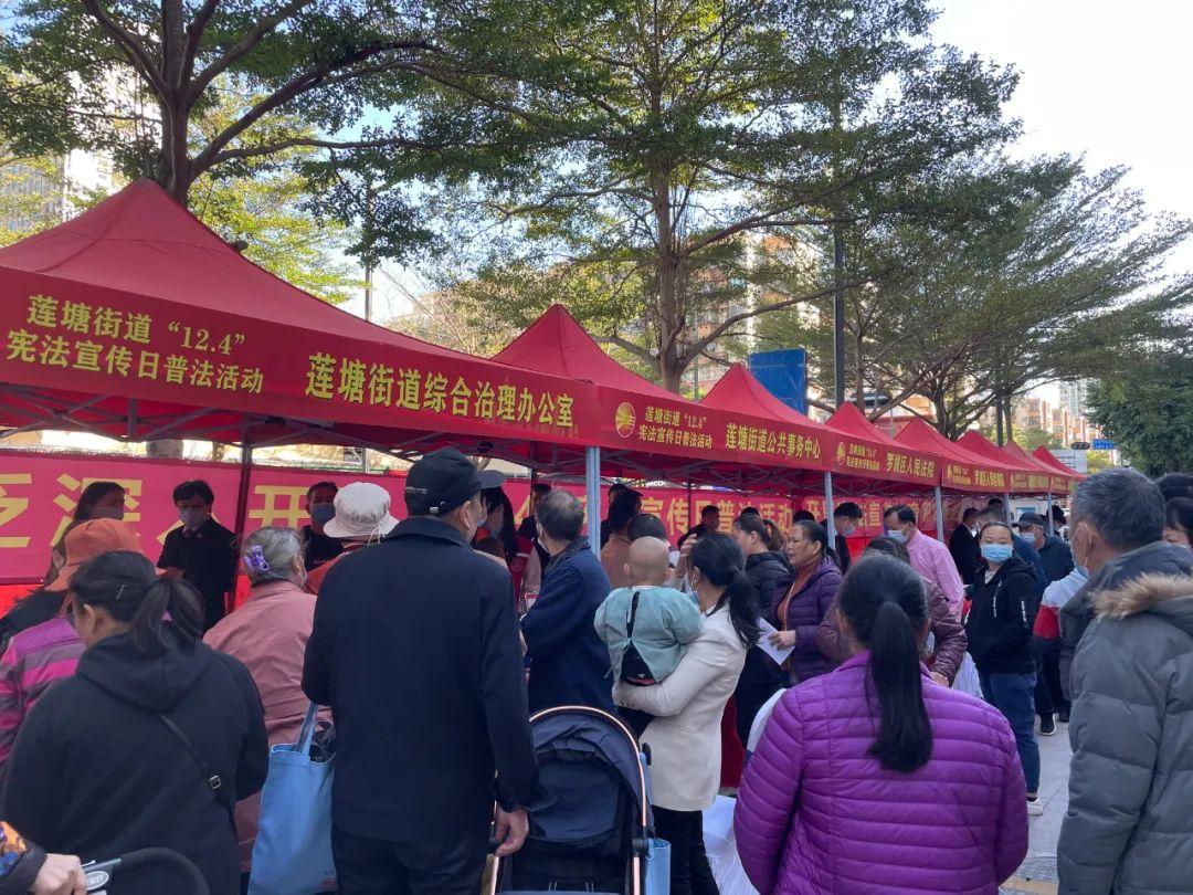 12月3日上午,南湖街道妇联联合9个社区妇联,在12.4国家宪法日即将到来之际,在罗湖创意文化广场开展普法宣传暨创建平安家庭宣传活动。