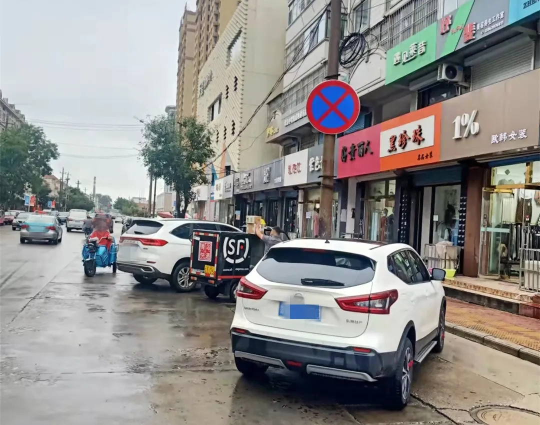 店铺门前没有停车位,占用堵塞消防通道(将被处罚)