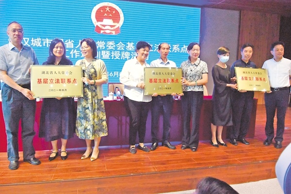 2021年6月8日,省人大常委会为武汉都市圈11个省人大常委会基层立法联系点授牌,并开展工作培训。(湖北日报全媒记者 王婧 通讯员 丁爱萍 摄)