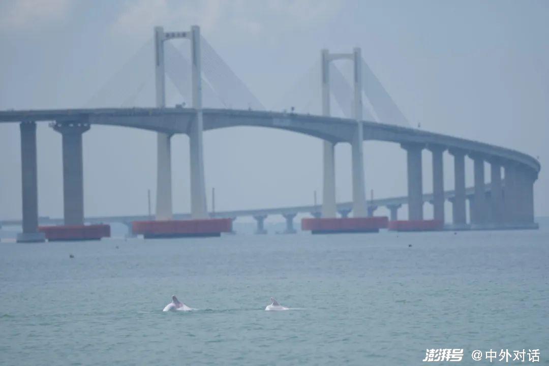 南澳大桥附近的两只白海豚。图片来源:郑锐强