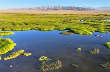 盛夏时节,地处甘肃省酒泉市阿克塞哈萨克族自治县阿伊纳乡境内的大、小苏干湖湿地,绿草如茵,牛羊成群,呈现出一幅生机勃勃的草原生态画卷。盛夏时节,地处甘肃省酒泉市阿克塞哈萨克族自治县阿伊纳乡境内的大、小苏干湖湿地,绿草如茵,牛羊成群,呈现出一幅生机勃勃的草原生态画卷。