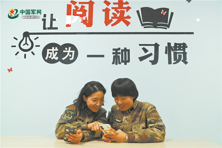 通过智能手机,官兵能从网上阅读更多书籍。纪彦丞摄