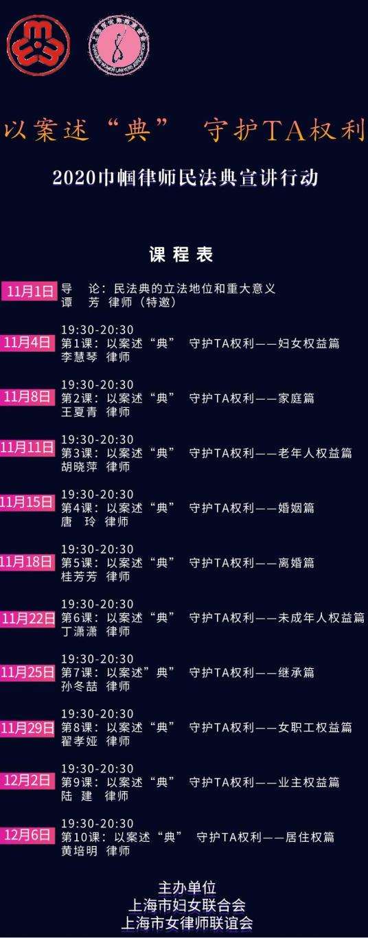 2020年5月,《中华人民共和国民法典》颁布,并将于2021年1月1日正式实施。在紧锣密鼓的全民学习民法典浪潮中,由上海市妇女联合会和上海市女律师联谊会共同主办的“以案述’典’ 守护TA权利”2020巾帼律师民法典宣讲行动正式启动。