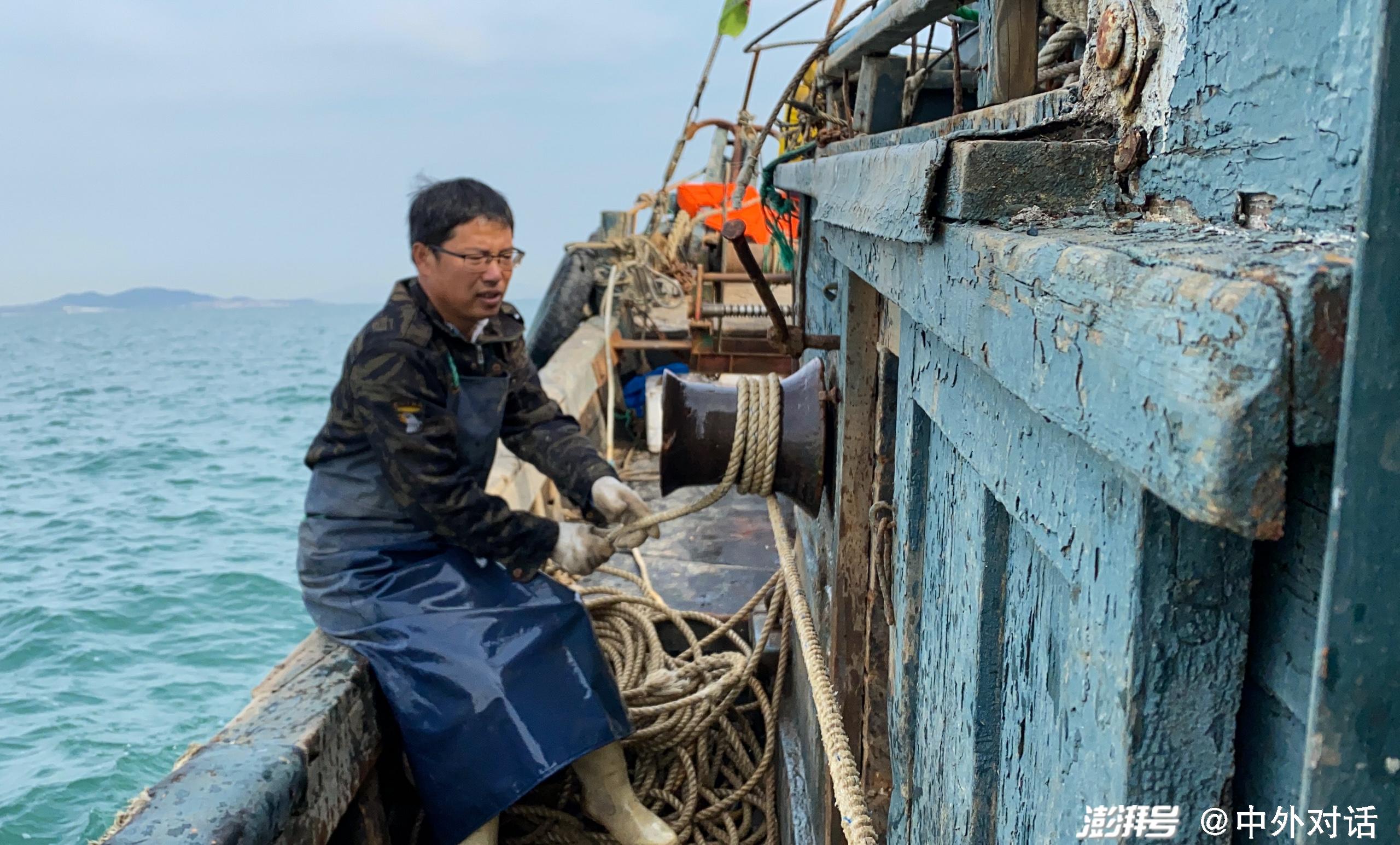 刘树杰在渔船上工作。图片来源:青岛海研会