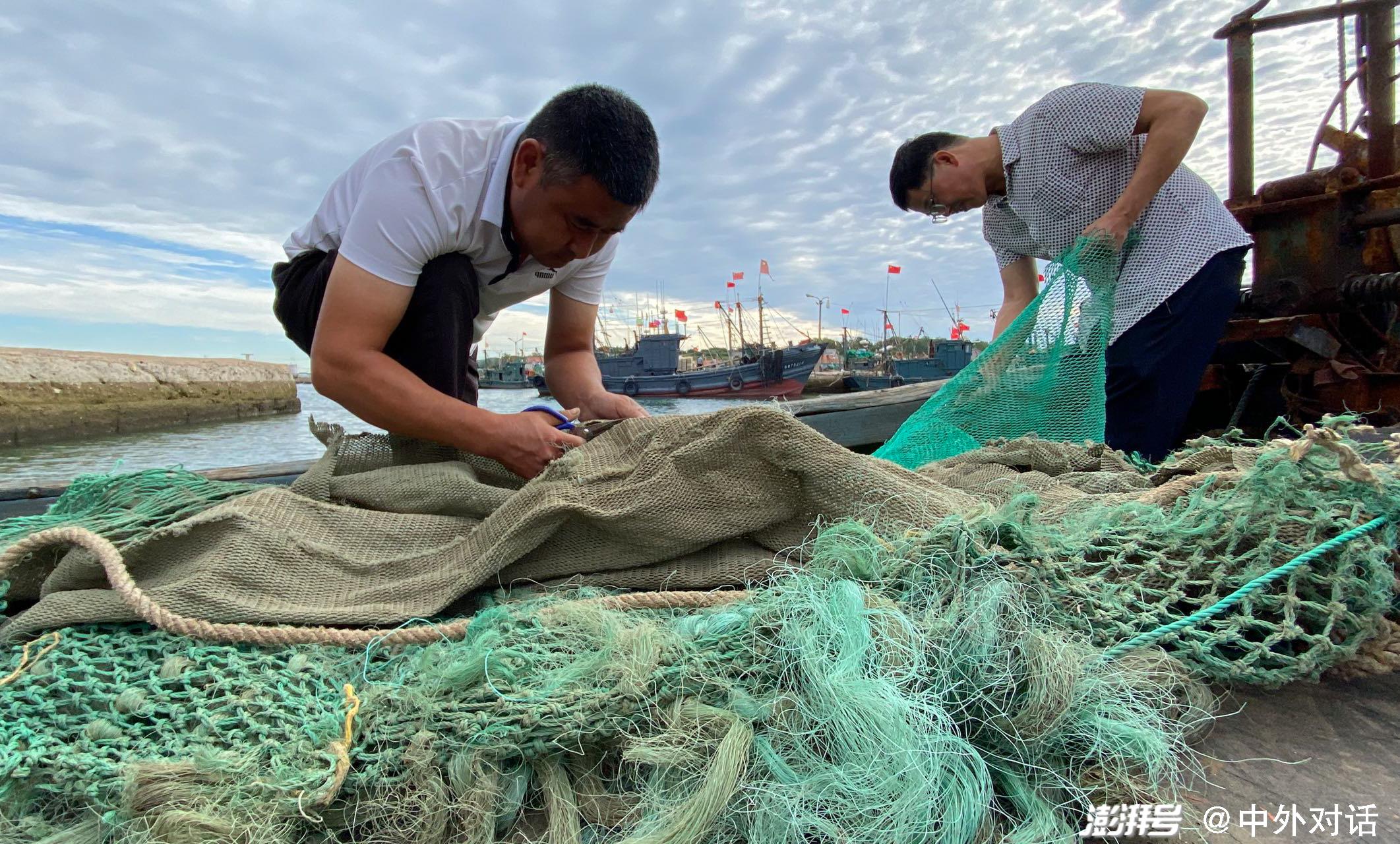 渔民更新网具准备做对比捕捞试验。图片来源:青岛海研会