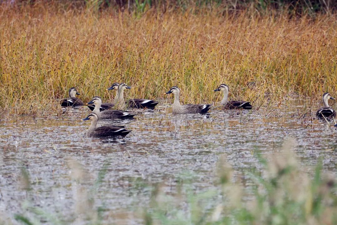 崇明东滩湿地里的斑嘴鸭