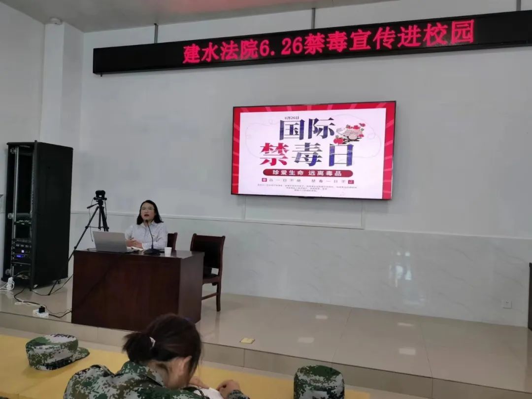 建水法院刑事审判庭的法官助理合雪梅以幽默的风格、干练的语言和独特的授课方式,带领同学们认识了毒品的起源、种类和毒品成瘾的机制,并结合相关案例讲述了毒品对个人、家庭、社会造成的严重危害以及青少年如何防范毒品侵害的方式方法,告诫同学们要增强自我防护意识,自觉远离毒品、珍爱生命,从思想上和行动上构筑起拒绝毒品的牢固防线。