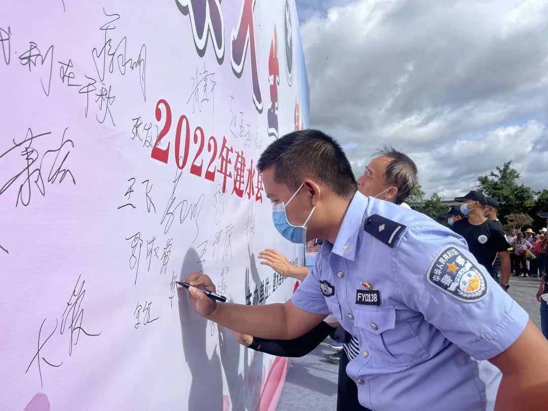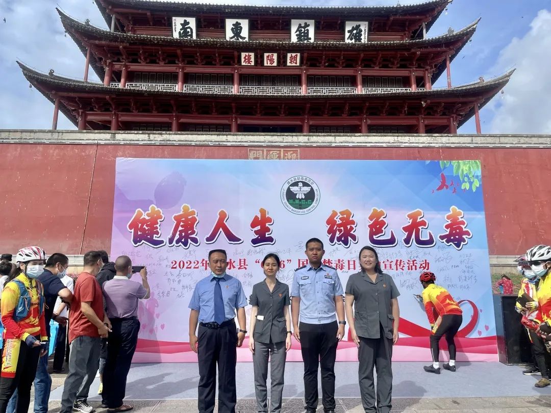 6月26日上午,建水法院在朝阳楼广场积极参与建水县禁毒办组织的以“绿色人生,健康无毒”为主题的国际禁毒日宣传活动,与建水县政法委、建水县公安局等32家单位共同开展禁毒宣传。