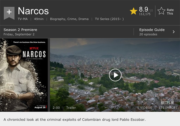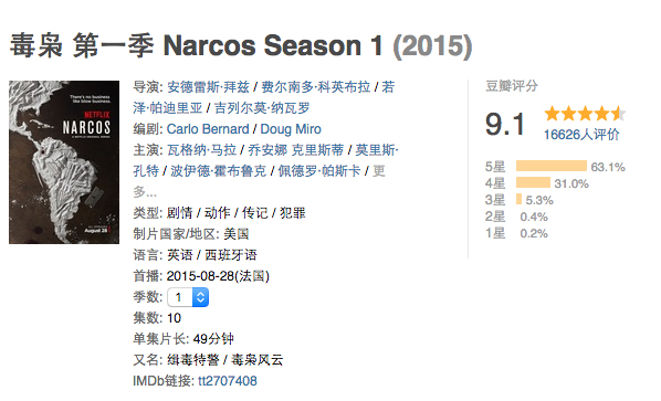 《毒枭》根据哥伦比亚上世纪80年代的大毒枭巴勃罗·埃斯科瓦尔的真实生平改编,从美国缉毒警察的角度去说这个故事。第一季中,埃斯科瓦尔制毒、贩毒、藏毒、行贿、杀人、走私、洗钱……跟国际犯罪搭边的,他都干了。