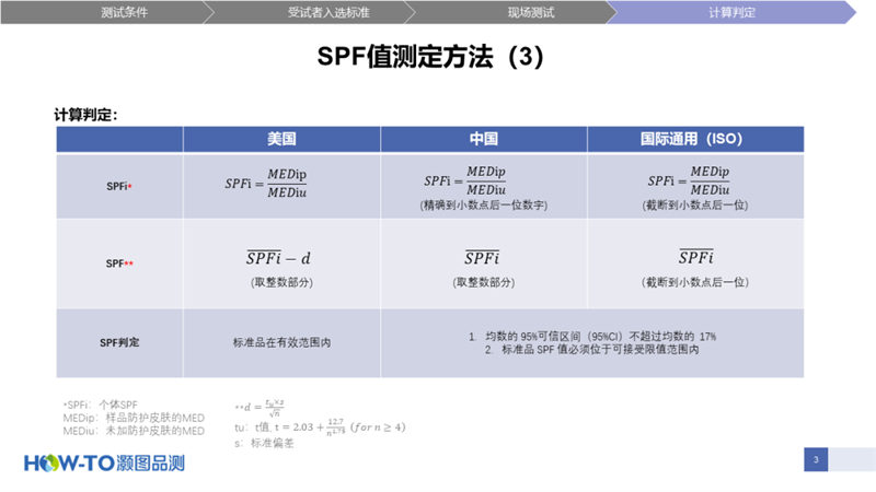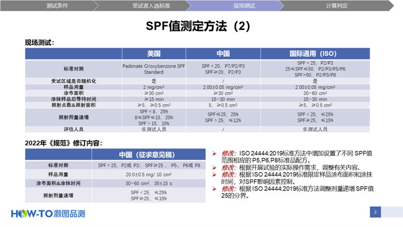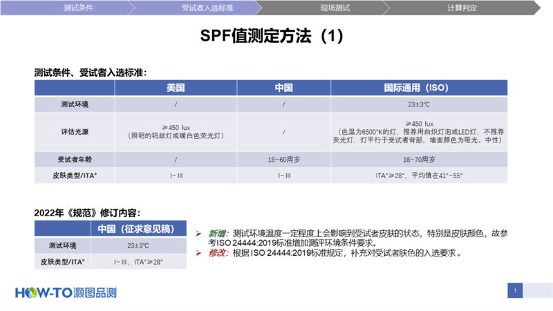 受试者入选标准:中/美/ISO与其在SPF值测定方法中提到的要求一致。欧盟则参考ISO。