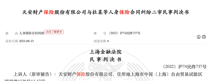 上海金融法院二审判决该案维持一审判决,即保险公司履行赔付责任,支付赔偿金40万元。