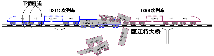 2011 年7月23日 20时30分05秒,甬温线浙江省温州市境内,由北京南站开往福州站的D301次列车与杭州站开往福州南站的D3115次列车发生动车组列车追尾事故,造成40人死亡、172人受伤,中断行车32小时35分,直接经济损失19371.65万元。