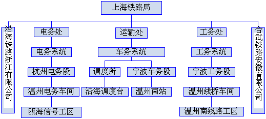 (9)沿海铁路浙江有限公司(以下简称沿海公司)。沿海公司由上海铁路局和浙江省铁路建设投资总公司共同出资,于2005年成立。该公司负责温福铁路浙江段和甬温铁路的建设和经营。公司下设甬温、温福铁路(浙江段)2个工程建设指挥部,负责甬温和温福铁路(浙江段)项目的工程技术、征地拆迁、安全质量、计划财务和后勤保障等工作。
