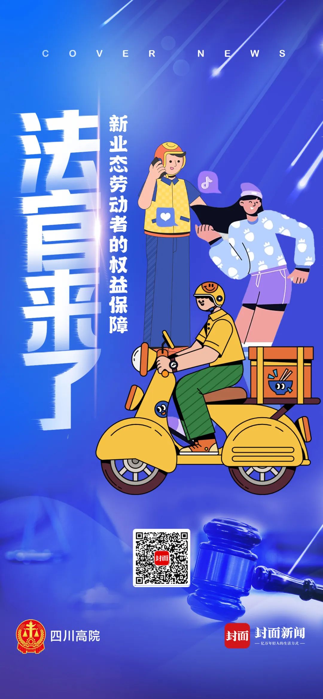 我们几乎每天都在享受网约车司机、快递员、外卖骑手、平台主播等工作者提供的便利服务。如今,以这些职业为代表的“新业态”劳动者也越来越多。与此同时,新形势带来了新问题,新业态劳动者的权益如何保障?5月17日,由四川省高级人民法院、封面新闻联合开设的“法官来了”直播访谈节目,邀请到四川省高级人民法院民一庭法官助理王睿晟和广元市中级人民法院民一庭副庭长郁华冰,在封面直播间,以案说法,探讨解读“新业态”劳动者的权益保障问题,为劳动者维权支招。