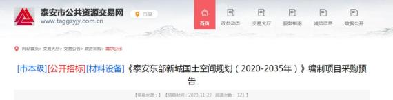 1.为落实《泰安市城乡一体空间发展战略规划》部署,按照市委市政府高标准编制东部新城规划要求,需组织编制《泰安东部新城国土空间规划(2020-2035年)》,同步开展政府采购工作。