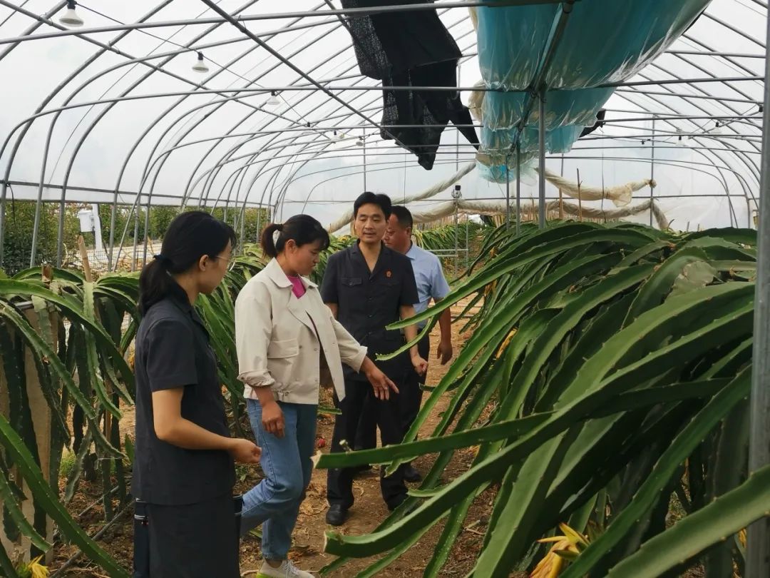 另一边,山南镇金牛社区生态水果种植家庭农场因当年的天气干旱,火龙果收成明显下降,农场的生产经营面临困境。干警们先是走访火龙果种植大棚,实地查看种植情况,随后结合家庭农场与保险公司签订的《保险合同》,引导农场主合理评估损失,并依据《保险合同》与保险公司协商主张权益。