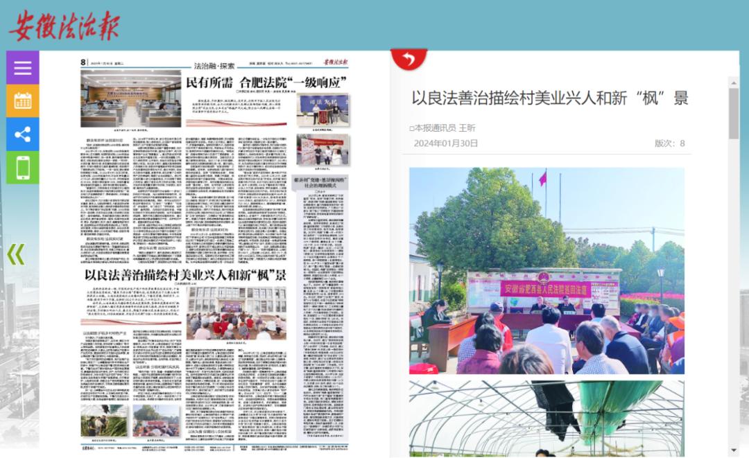 原标题:《【媒体聚焦】《安徽法治报》:以良法善治描绘村美业兴人和新“枫”景》