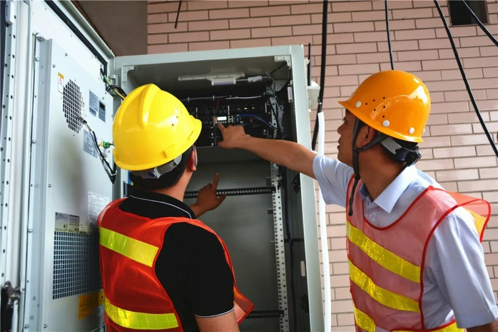 梁山街道群益小区5G基站,工作人员正对电源进行检查。(资料图)