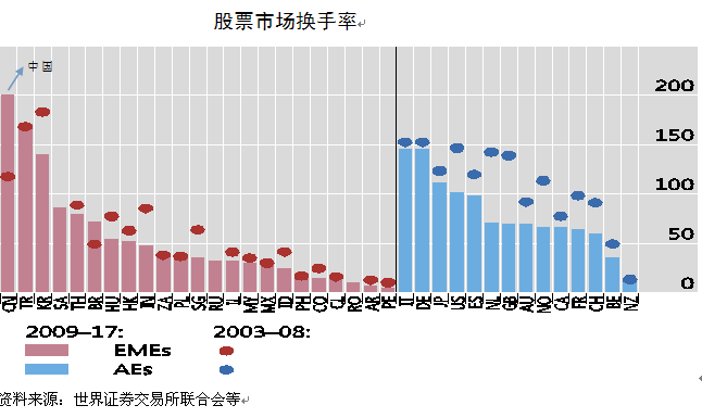 政府债券市场方面,从买卖价差(bid-ask spread)等指标来看,一些EMEs政府债券市场的流动性,已经接近于流动性最好的AEs政府债券市场;由于政府债券余额的增加,许多AEs的换手率有所下降,目前EMEs政府债券换手率经常高于AEs。