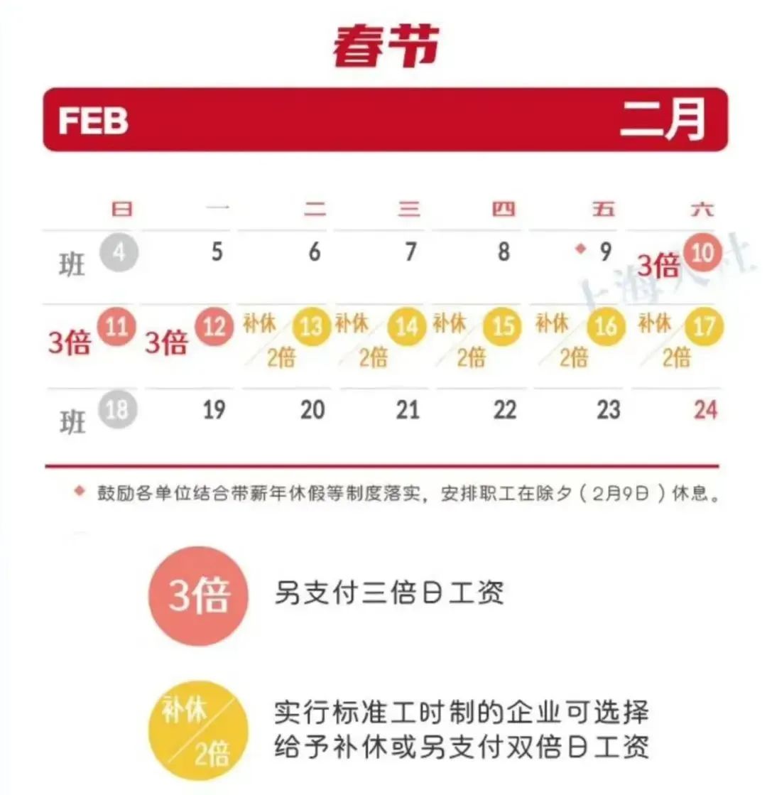 ■ 2月10日至12日(初一、初二、初三)加班发放3倍工资。