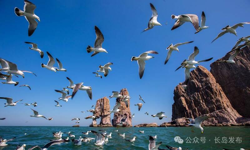 长岛151个岛屿构成了一连串北方候鸟和昆虫迁徙的海上驿站,为野生动物尤其大量的迁徙鸟类、庙岛蝮等物种提供了良好的觅食和栖息条件。这里分布着国家重点保护鸟类90种,其中,中华秋沙鸭、东方白鹤等国家Ⅰ级重点保护鸟类21种,疣鼻天鹅、角䴙䴘等国家Ⅱ级保护鸟类69种。每年途经的鸟类有360多种、120多万只,占我国迁徙猛禽物种总数量的80%以上,是东亚-澳大利西亚全球候鸟迁徙通道黄渤海上的重要节点,成为我国候鸟迁徙和保护的关键地区。沧海桑田、时代变迁,无数生物在这片神奇的天地繁衍生息,自在生长,也让生态保护和绿色发展成为长岛永续的主题。