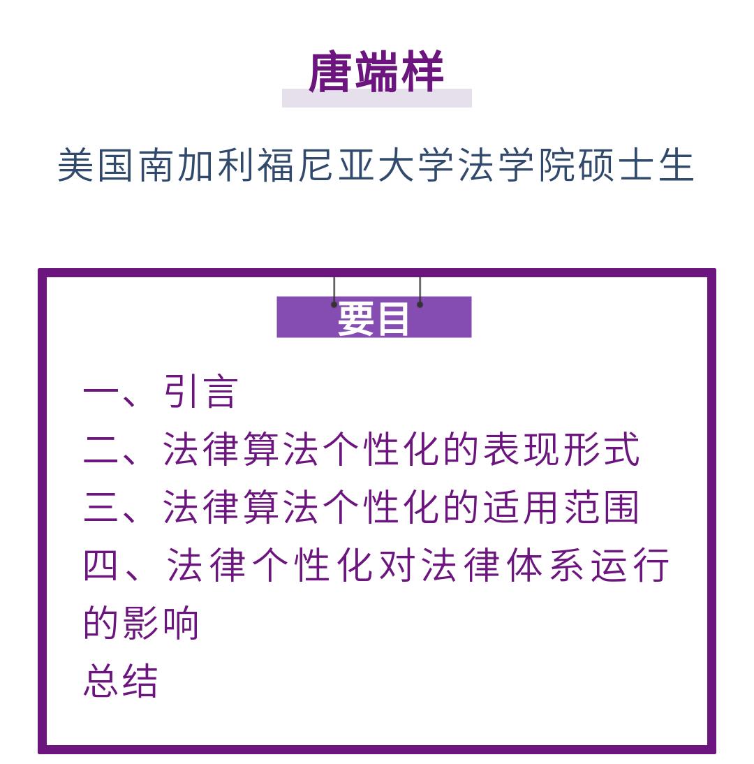 原标题:《唐端样|数字时代法律的算法个性化研究》