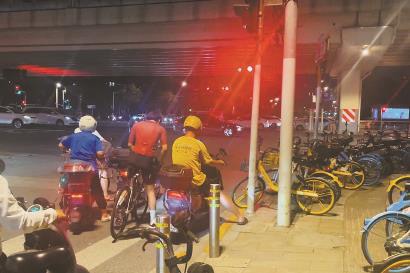 “碰擦是常有的,有时是自行车撞自行车,有时候还会撞到路人。”苗江路某停车场管理人员陈先生说,以前,晚上到黄浦滨江公共空间散步、跑步的市民很多,因为快速骑行的车辆变多,“一些经常来的老人和小孩,都不太看到了”。