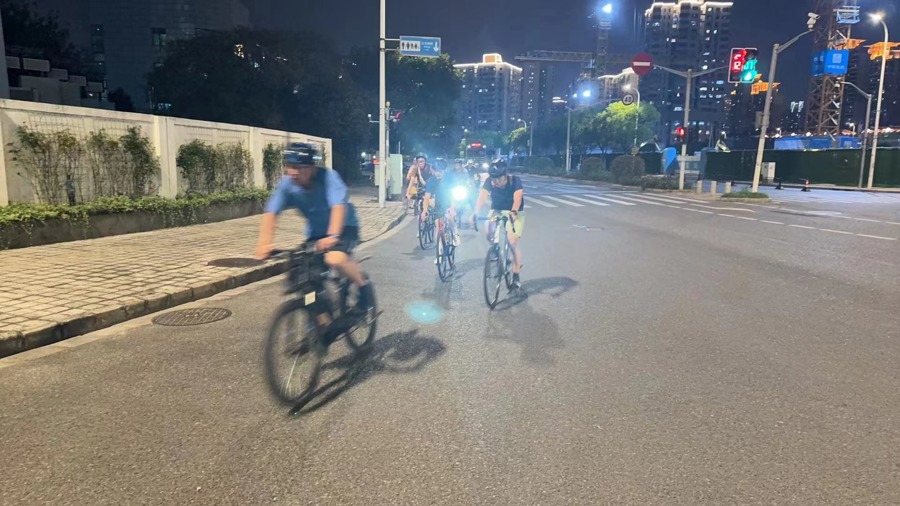 社交媒体上,有骑行者将此称为“天选骑行路”,原因是按顺时针方向骑行,仅有万荣路与大宁路交叉路口一处红灯,晚上车辆和人员都相对较少,“速度上得去”。