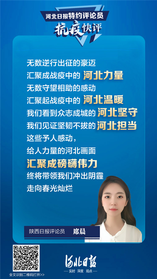 依托中国新闻名专栏“纵横谈”“燕赵论坛”以及“青园锐见”微信公众号、河北日报客户端观点频道、河北新闻网“慷慨歌”网络评论频道等全媒体评论矩阵,围绕阐释解读习近平总书记系列重要讲话、省委重要会议精神以及社会热点,迅速及时推出社论、本报评论员文章以及时评、网评,进行权威引导。策划推出“两会快评”“文化快评”等新媒体评论专栏,其中年初抗疫期间邀请全国20家省级党报评论员聚焦河北抗疫故事撰写“抗疫快评”,全网阅读量超过9000万。
