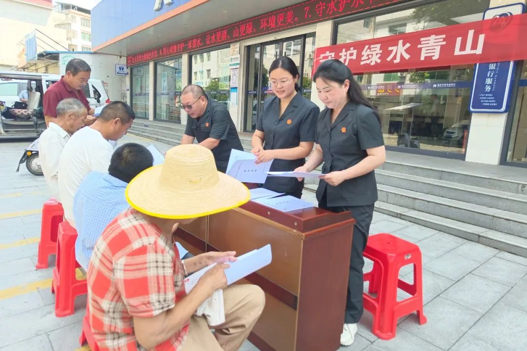 2024年8月15日是第二个全国生态日,值此之际,罗田法院民二庭和匡河人民法庭组织干警走上匡河街头、走进群众,开展了一场生态环境保护普法宣传活动,罗田法院党组成员、副院长汪俊、审判委员会专职委员廖小刚参加活动。村民们纷纷参与交流,一派热闹景象。