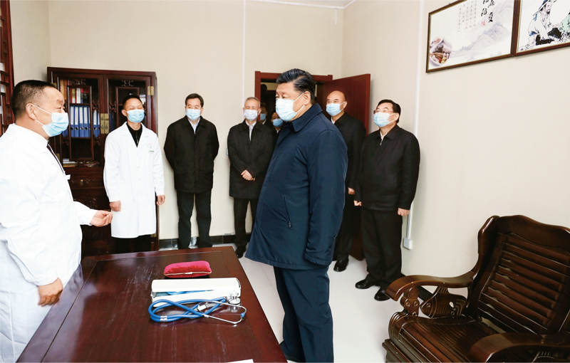 2020年4月20日至23日,中共中央总书记、国家主席、中央军委主席习近平在陕西考察。这是4月21日,习近平在安康市平利县老县镇卫生院,了解基层卫生防疫、医疗保障工作。新华社记者 鞠鹏/摄