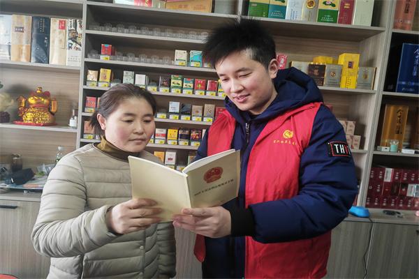 为进一步推动“八五”普法走深走实,新春佳节来临之际,江苏省宜兴市烟草专卖局(以下简称“宜兴烟草”)积极开展春节前夕普法宣传活动,组织普法人员上门普法,为新春佳节营造浓厚的法治氛围。