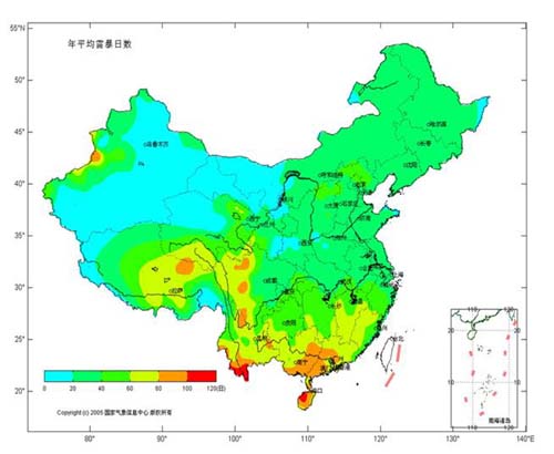 王志强:我国地处温带、亚热带地区,雷暴活动十分频繁。据统计,年最多雷暴日有22个城市在50天以上,最多达134天;年平均雷暴日有10个城市超过40天,最多达94天。
