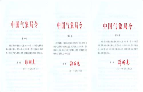 2011年7月,中国气象局令第20号、21号、22号发布。