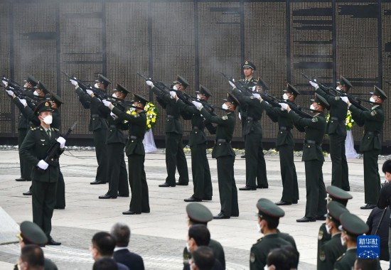 9月3日,礼兵在安葬仪式上鸣枪致敬。新华社记者 杨青 摄
