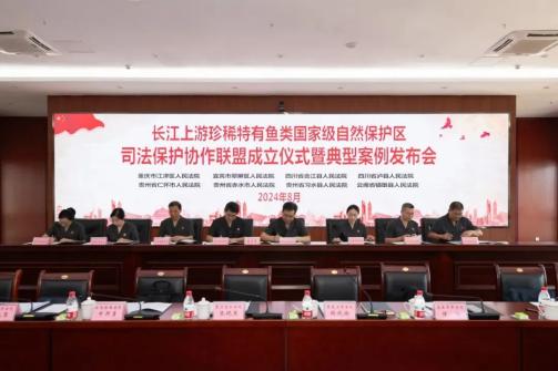 8月14日,重庆市江津区,四川省宜宾市翠屏区、合江县、泸县,贵州省仁怀市、赤水市、习水县,云南省镇雄县八地法院,在重庆江津举办长江上游珍稀特有鱼类国家级自然保护区司法保护协作联盟成立仪式。