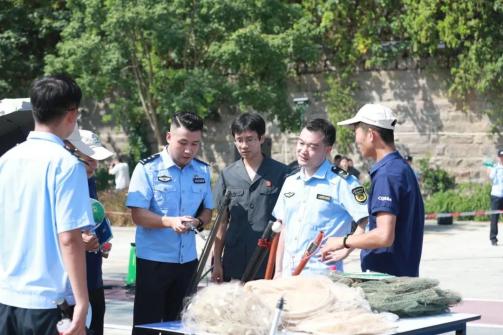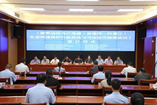 8月14日,重庆黔江法院、湖北咸丰法院与两地农业农村委员会(局)、林业局、生态环境局8家单位,在黔江共同签署《渝鄂边区乌江流域(唐崖河—阿蓬江)生态环境保护行政执法与司法协作框架协议》,并开展销毁禁用渔具、巡河、法治宣传活动。