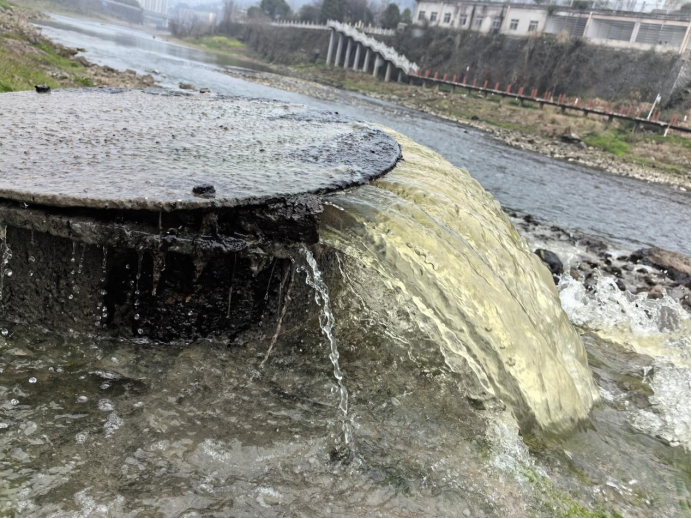 图3 2024年3月4日,督察组暗查发现,恩施市大沙坝污水处理厂沿江污水管网大量生活污水溢流排入清江