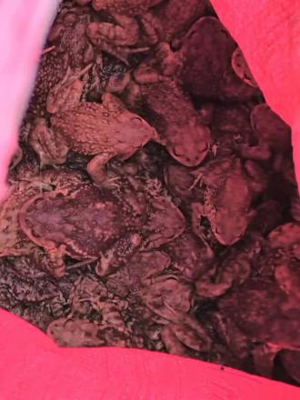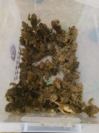 民警立即喊停该男子的行为,经现场清点,这位男子已经非法抓获野生蟾蜍100余只。
