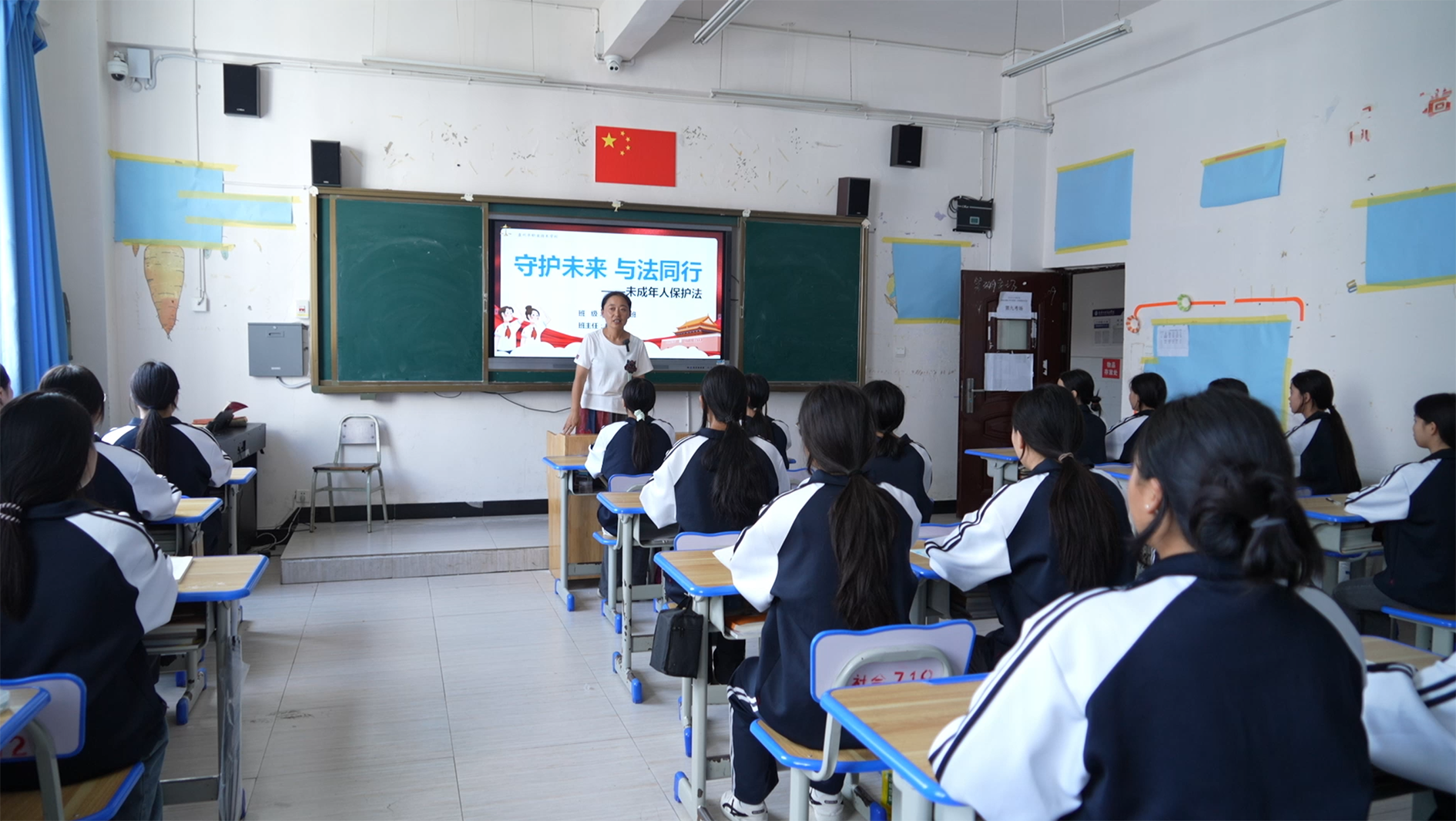 8月23日,在盘州市职业技术学校2022级学前教育2班的普法教育课上,班主任老师白雪正在为同学们解读未成年人保护法、未成年人网络保护条例等法律法规知识。她结合实际案例,教育引导同学们要遵守法律,增强自我保护意识,自觉抵制网络不良信息,养成健康文明上网的良好习惯。
