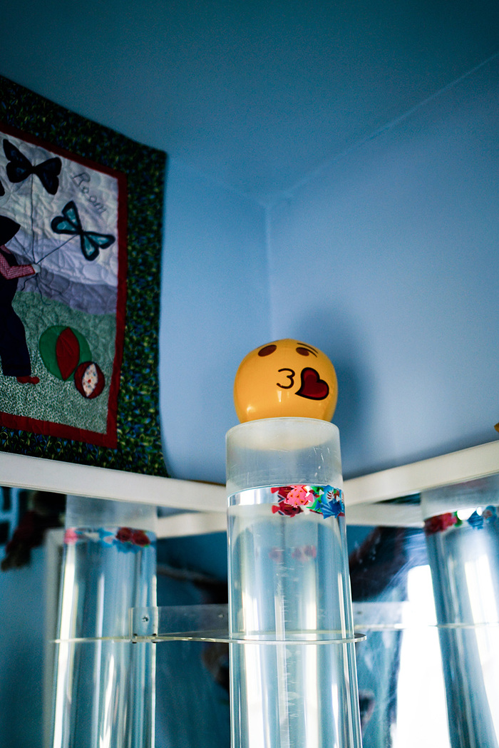 孩子的活动范围基本在蝴蝶之家的两间专门的房间之内,它们一间被漆成蓝绿色,一间被漆成粉色。