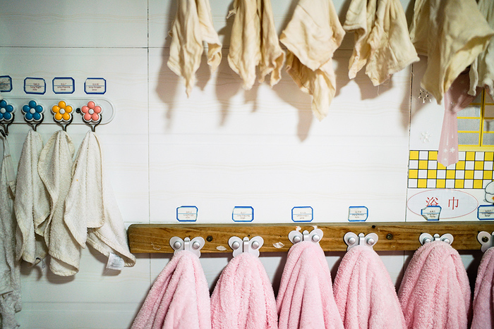 在蝴蝶之家,四个班组的护理阿姨轮流24小时值班,保证每一个孩子只见到四个固定的面孔。
