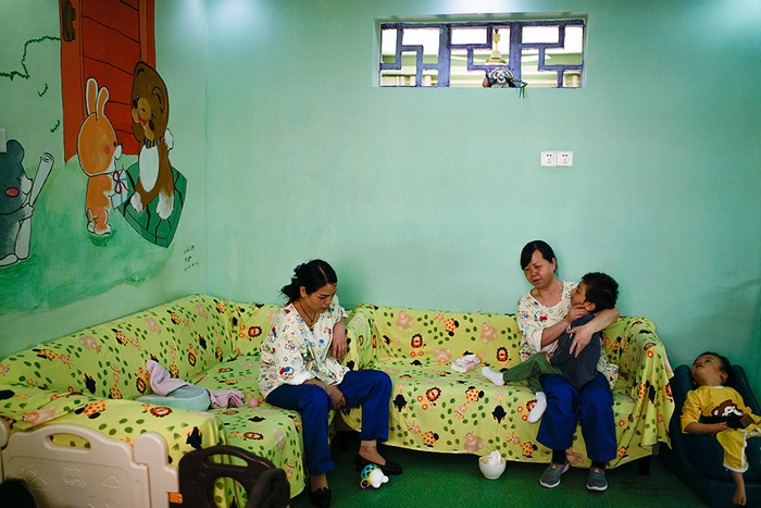 “肢体抚摸在这里很重要”,符晓莉解释道。在这里,肢体的抚摸等方式可以让孩子们渐渐获得安全感。甚至,有些孩子是在护理阿姨的怀抱中离开的。