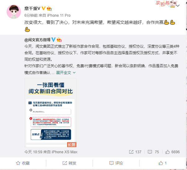 阅文新领导团队在这份合同中表现出来的尊重与诚意,获得了网文大神与业内专家的支持与认可。