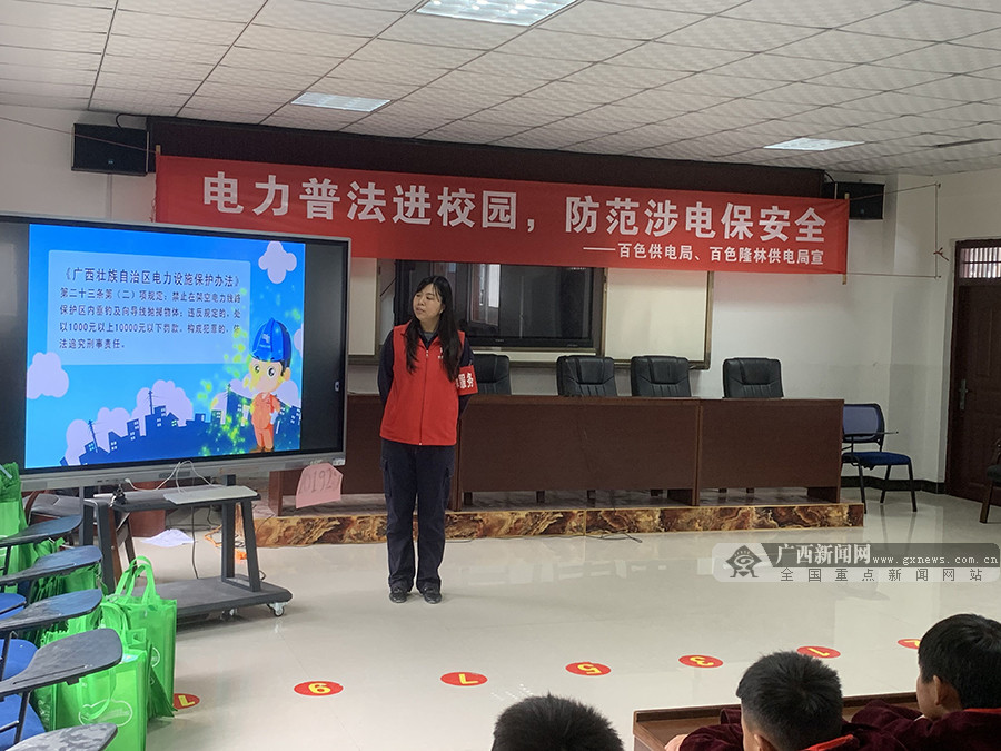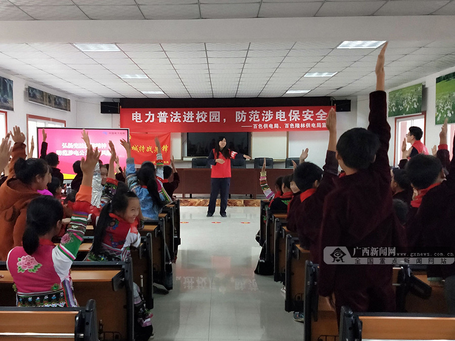 广西新闻网百色10月30日讯(通讯员 黄筱璁 )为了防止渉电公共安全事故事件发生,提高农村中小学生电力法律法规认知和安全用电意识,增强农村儿童、老人渉电公共安全防范能力。10月29日,百色供电局法律中心、隆林供电局组织8名青年志愿者组成法律服务工作队,到隆林各族自治县德峨镇常么小学开展以“电力法律进校园,防范渉电保安全”为主题的法律服务活动。