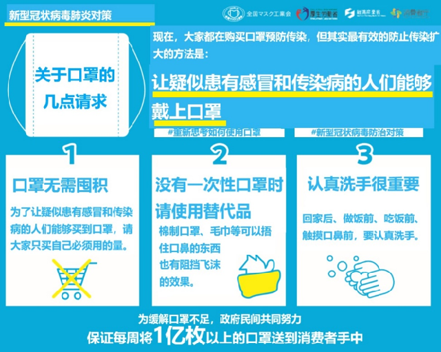 (2)国家和各都道府县要求市民和企业做到:佩戴口罩,打喷嚏捂住口鼻,勤洗手,避免前往人群密集处,鼓励错峰上下班;各单位做好办公室内防止传染对策;根据病毒毒性和传染性,要求各学校根据《学校保健安全法》临时停课;公共交通部门呼吁乘客佩戴口罩并采取其他防治措施。