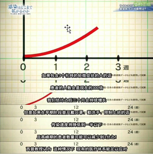 图3:北海道大学教授通过模型讲解如何推迟传染人数高峰到来