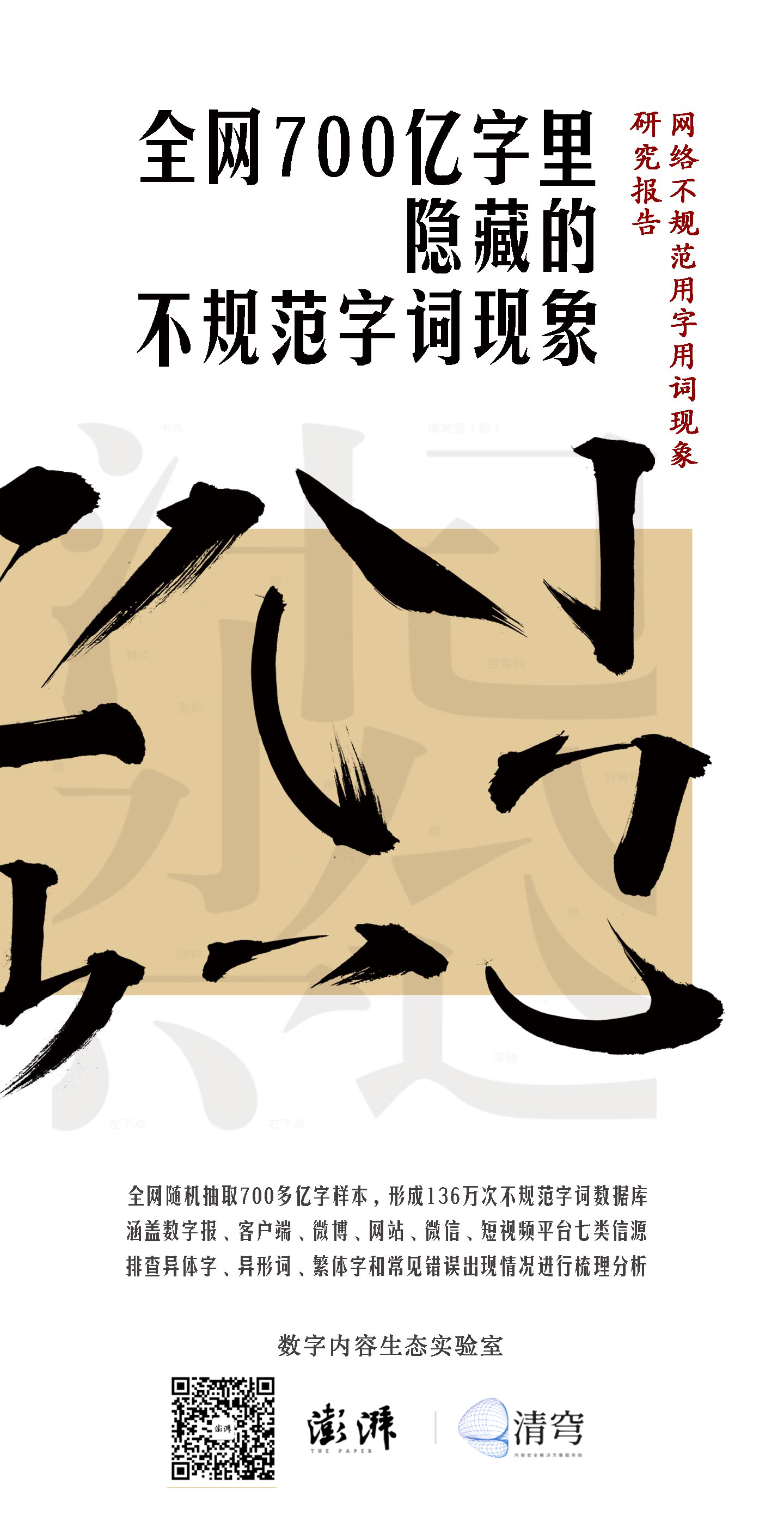 由澎湃新闻牵头发起,上海人工智能研究院、上海市信息安全测评认证中心、上海新华传媒连锁有限公司和上海蜜度信息技术有限公司联合共建的数字内容生态实验室,今日发布《网络不规范用字用词现象研究报告》,全文如下:
