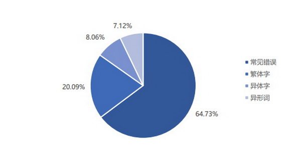 按照错误类型统计,常见错误是出现频率最高的类型,占比超过六成;繁体字也是较常出现的错误类型,占比达到20%;异体字、异形词出现相对较少,因异形词、异体字可将规范文件纳入输入法数据库,通过选词推荐等技术手段减少误用。相较而言,形近字、形近词错选等常见错误以及公众主观通过错用体现个性的情况更易发生,且可能通过输入法记忆功能固化错误选择,成为网络不规范字词出现的主要原因。