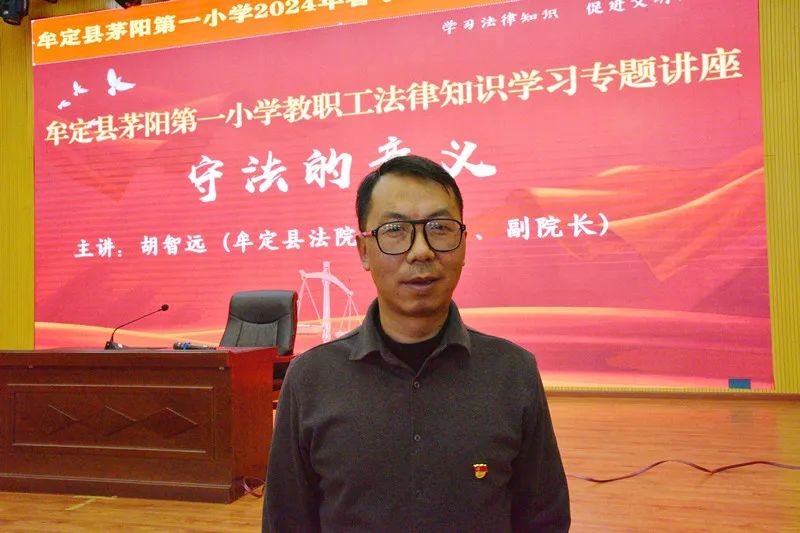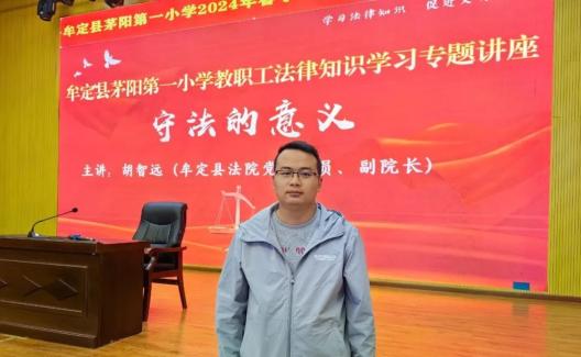 为进一步提高教师队伍的法治素养,2月21日,应牟定县茅阳第一小学邀请,牟定县人民法院党组成员、副院长胡智远给全校教职工上了一堂以“守法的意义”为主题的法治课。